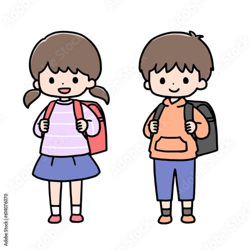 並んで立つ小学生の女の子と男の子