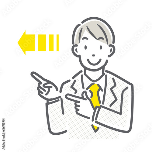 指さす笑顔のビジネスマン シンプルでお洒落な線画イラスト