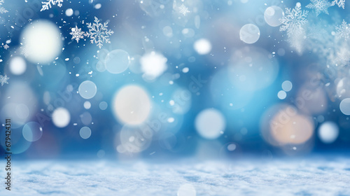 輝く雪の結晶と玉ボケのイメージ背景