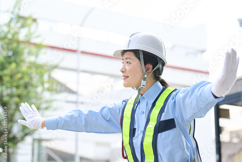 警備員の仕事をするアジア人女性