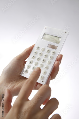 電卓を使う女性の手