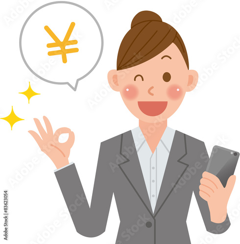 ビジネスウーマン スマートフォン お金