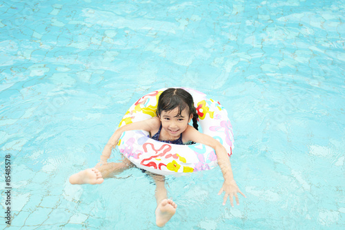 プールで遊ぶ笑顔の女の子