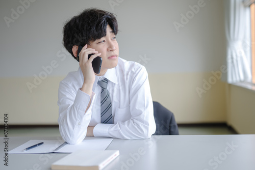 携帯で話すビジネスマン