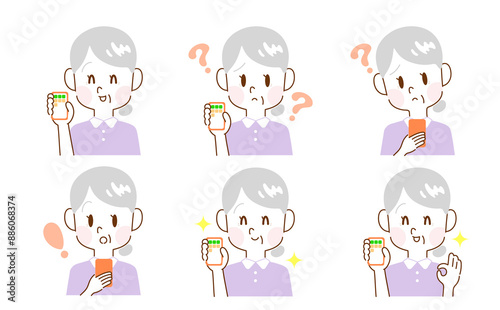 スマートフォーンを持つシニア女性の表情