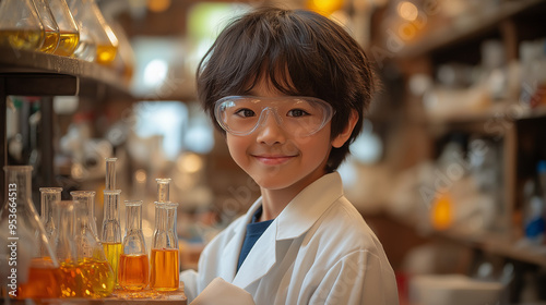 化学実験をする男の子