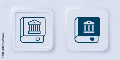 Filled and outline Law book icon isolated on grey background. Legal judge book. Judgment concept. Square button. Vector