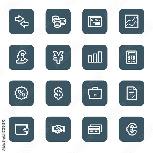 Finance web icons, navy square buttons