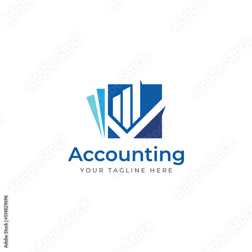 Financial accounting logo, with check mark for financial accounting stock chart analysis. In modern template vector illustration concept style.