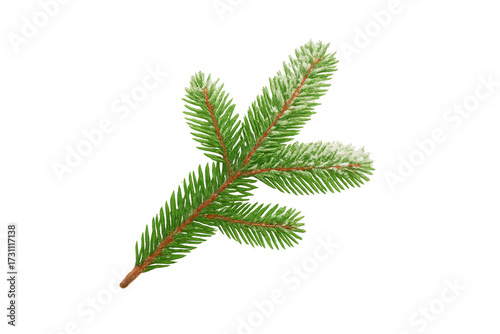 Fir tree branch covered in snow, symbolizing winter, christmas, and holiday season on transparent background