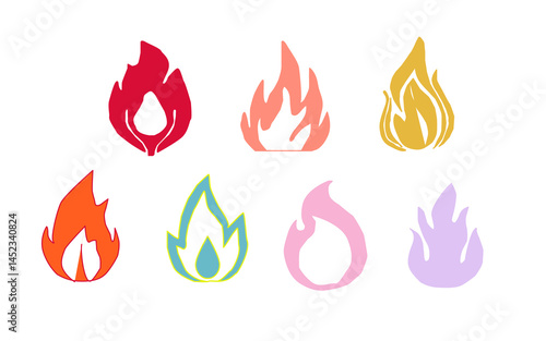 Fire flame icon. Flame vector logo. Hot fire on white background. Flame simple illustration. Graphic heat symbol. Abstract silhouette, hell element clipart. Red stroke shape. Scribble punk pastel art