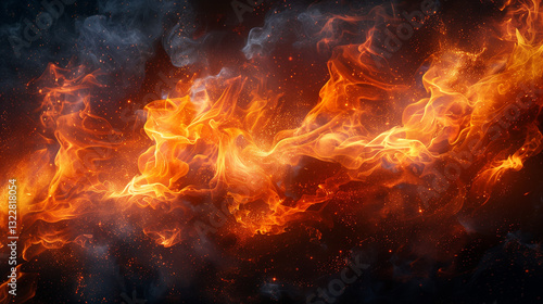 Fire flames on black background. Blaze fire flame background and textured
