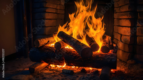 fire in fireplace, ai generated