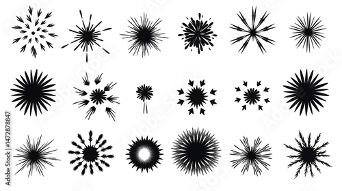 Fireworks Burst Silhouette Icon Set for Festive Holiday Sparkle Design Projects