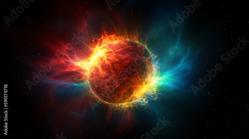 fireworks in the night, neutron star exploding with a vibrant colors, generative ai