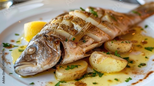 Fish and potato served on a dish