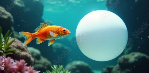 Fish swimming in front of a white floating object , water, ocean
