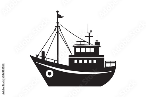 Fishing Boat silhouette vector illustration, Fishing Boat silhouette vector