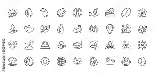 Fishing, Leaf and Rainy weather line icons pack. AI, Question and Answer, Map pin icons. Coffee beans, Oil drop, Mineral oil web icon. Salad, Eco energy, Fish pictogram. Vector