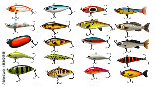 Fishing lures collection on a transparent background