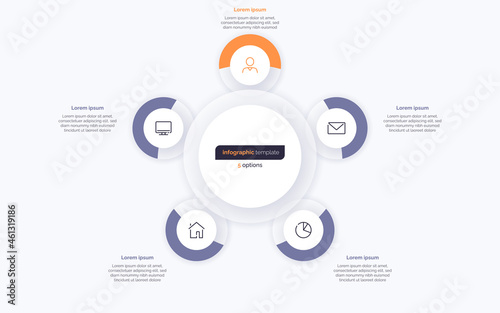 Five option circle infographic design template. Vector illustration