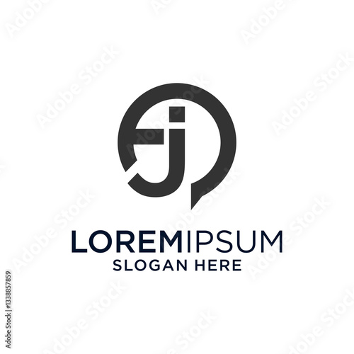 FJ Monogram Logo Design in a Dark Grey Circle on White Background