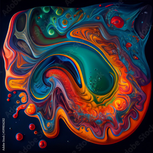 Flat beautiful liquid acrylic pouring Fluid painting, with cells, perfect composition, high definition Generative AI