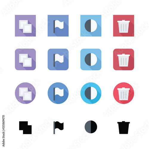 Flat black vector icons set for web and media play buttons