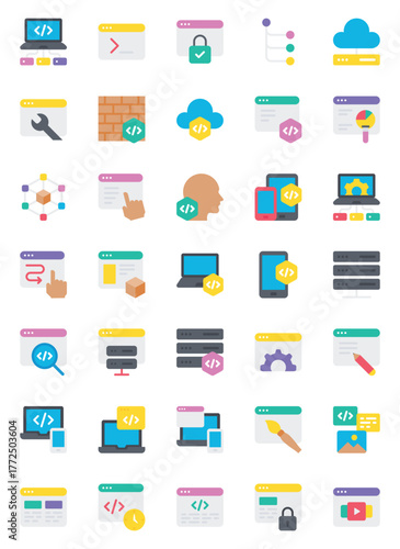Flat color icons set for Web development