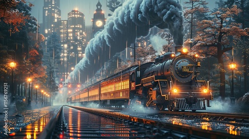 flat design, illustration, The Train of Imagination A journey through whimsical and magical train stations