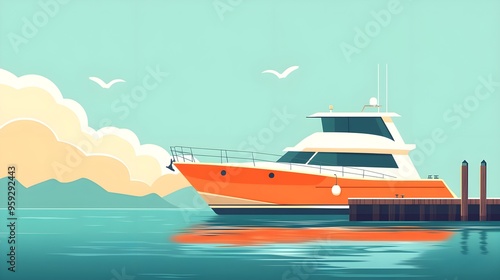 Flat design of a boat docked by a pier with minimal elements