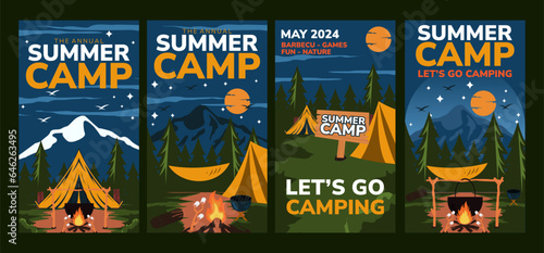 Flat design summer camp instagram stories