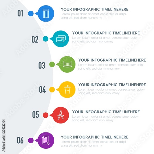 Flat education, travel, kids and toys infographic timeline template with 7 options for presentations, advertising, annual reports