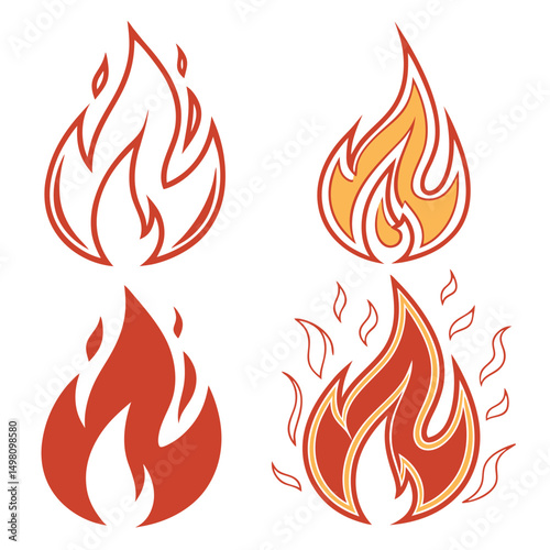 Flat Flame Icon Set in Red Orange Tones Scalable Clean Vector