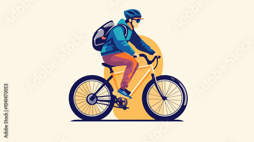 Flat illustration of a guy on a bicycle. Bike ride. Cycling.