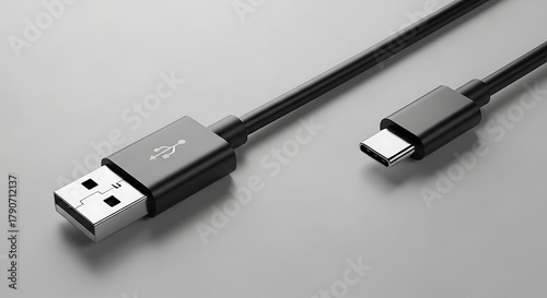Flat lay black USB-A to USB-C cable for power transfer.