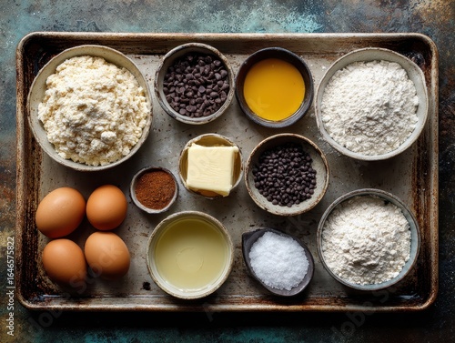 Flat Lay of Cookie Dough Ingredients on Baking Sheet