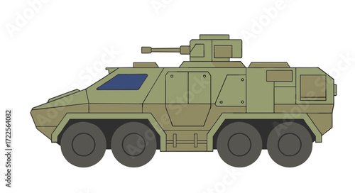Flat Style Detailed Armored Military Vehicle Troop Carrier Transportation Illustration