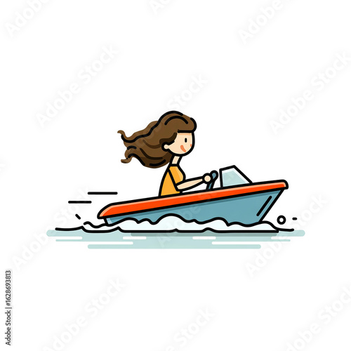 flat style illustration of happy woman on a sailing boat