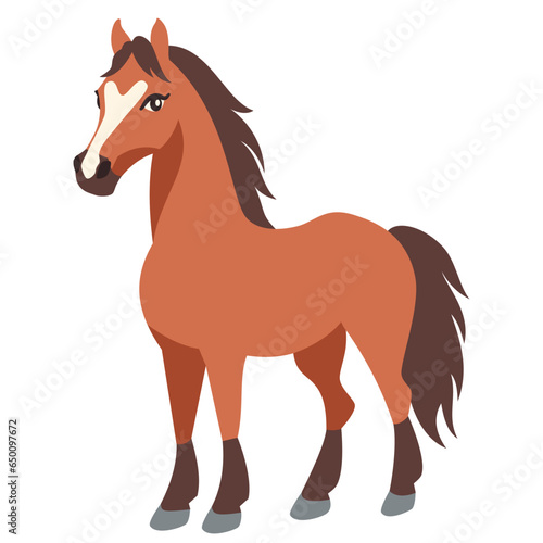 Flat vector illustration. Farm animals, cute nester horse on white background . Vector illustration