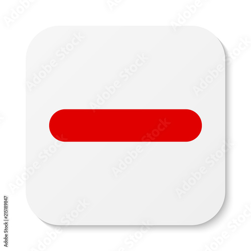 Flat white square sticker minus sign icon, button. Negative symbol isolated on white background.