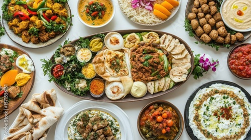 Flavorful Mediterranean Feast with Colorful Dishes and Fresh Ingredients