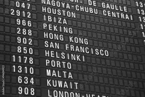 flights information board in airport terminal