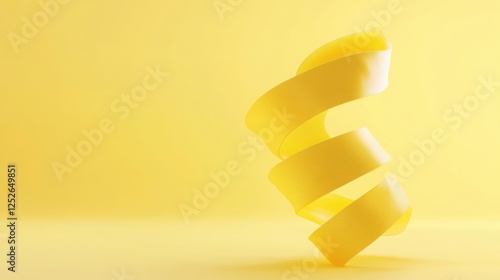 Floating 3D spirals twisting upward against a solid yellow background, creating a sense of motion.