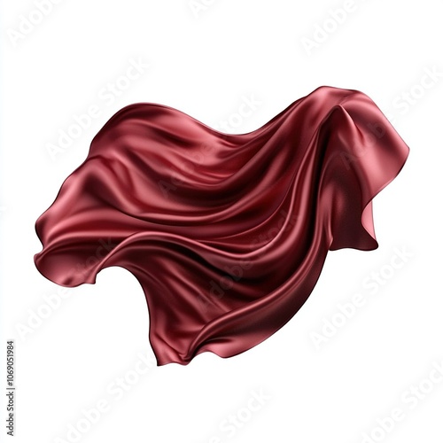 Floating elegant Maroon fabric, cut out isolated on a white background