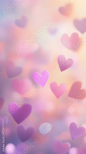 Floating pink hearts with dreamy bokeh background in a soft romantic aesthetic