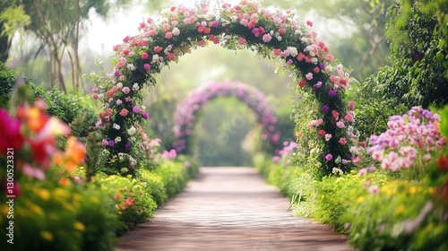 floral archway leading to a magical spring garden.