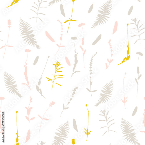 Floral background. Vector seamless pattern with hand - drawn poppies, lavender flowers and fern leaves.