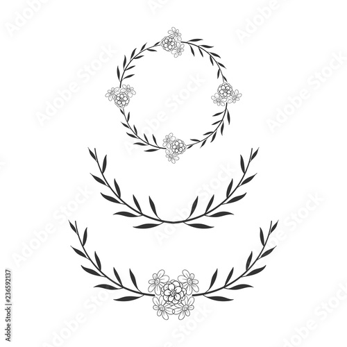 floral circle frame Simple wedding wreath vector hand drawn illustration