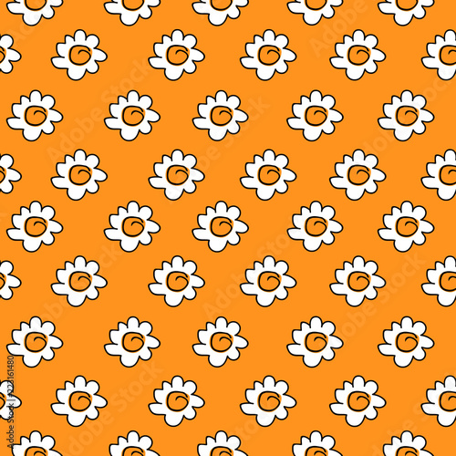 floral orange seamless chamomile drawing. vector illustration. White daisies seamless pattern on a ginger background.